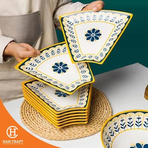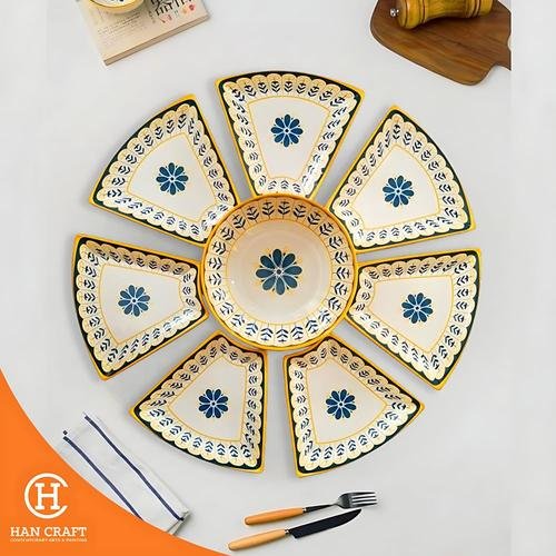 Hancraft Piring Set Yellow Pattern Buffet Serving Ceramic