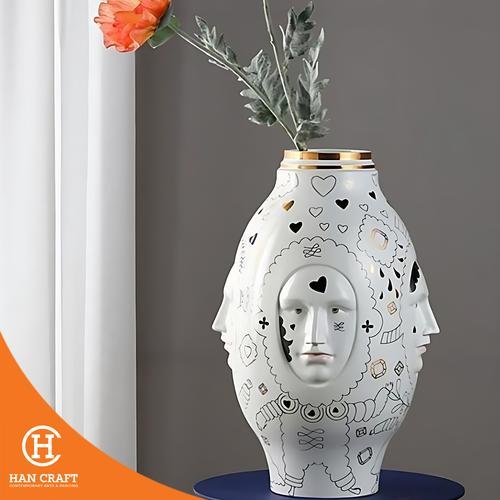 Hancraft Vas Bunga Face Ceramic Vase Home Deco