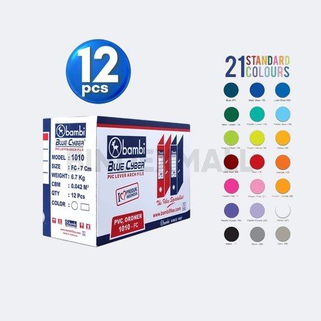 1 Dus Isi 12pcs Bambi Lever Arch File Ordner Folio All Color Jumbo Size 75 mm – Kode 1010