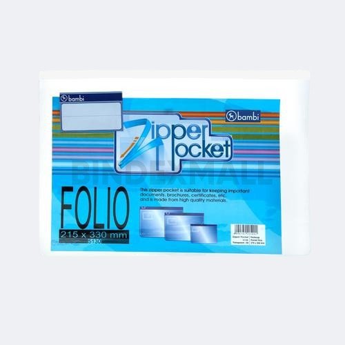 1 Pack 25 Pcs Bambi Organizer Map Dokumen Folio Zipper Pocket Tipe PVC Transparent Original
