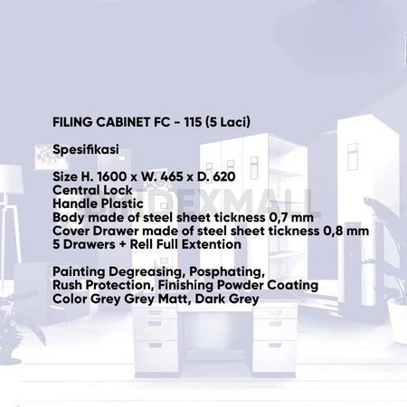 Bambi Lemari Arsip Besi 5 Laci Premium Filing Cabinet FC kode LK-115