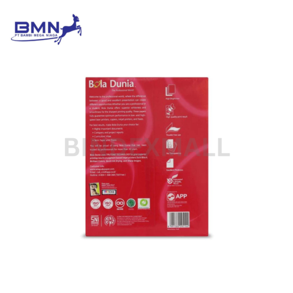 Dengan memilih Kertas Quarto Bola Dunia 80gsm di cn.bindexmall.com, Anda berinvestasi pada kertas premium yang mendukung produktivitas. Anda dapat mencetak lebih percaya diri, mengarsip dokumen dengan rapi, dan tetap menjaga tampilan setiap lembar kerja. Jadi, segera lengkapi kebutuhan ATK kantor dan rumah Anda dengan kertas HVS quarto tebal ini agar setiap dokumen terlihat lebih meyakinkan.