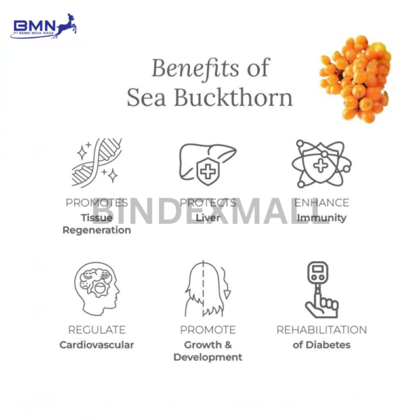 Minyak buah sea buckthorn terkenal sebagai sumber alami Omega-7 yang sangat langka. Asam lemak ini mendukung regenerasi sel sehingga kulit terlihat lebih kenyal dan bercahaya. Selain itu, kombinasi Omega-3, 6, dan 9 di dalamnya membantu meningkatkan hidrasi dan menjaga elastisitas kulit. Tidak hanya bermanfaat untuk kecantikan, nutrisi ini juga memberi perlindungan antioksidan yang membantu tubuh melawan stres lingkungan sehari-hari.