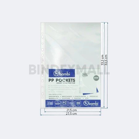Sheet Protector Bambi F4 Transparent 0.065mm – 1 Dus 50 Set (1000 Lembar) Original