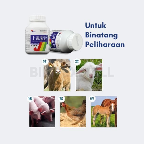 | Babi, anjing, anak sapi, domba | 2 – 5 tablet per 10 kg berat badan |